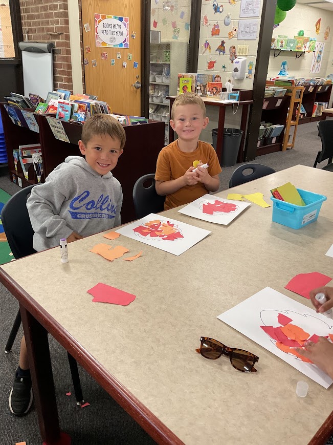 In Kindergarten we have been reading fall stories and learning how to use different types of paper. Students tore construction paper to create fall themed leaves!