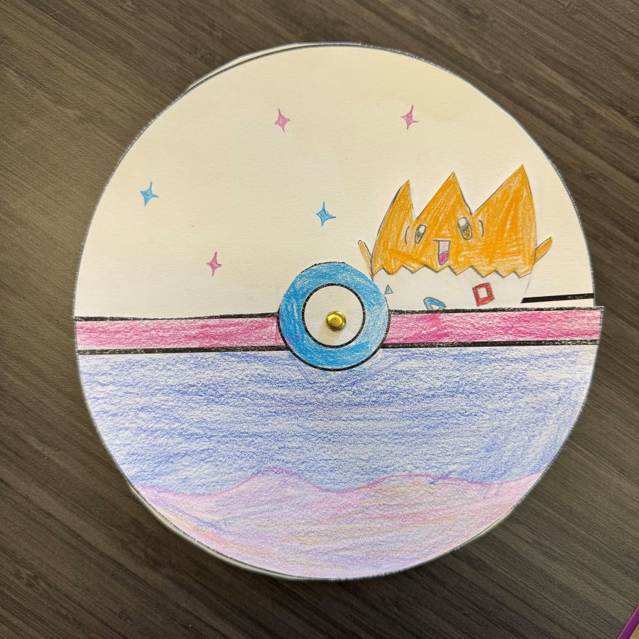 In 3rd grade we are learning how to use different cardboard connecting techniques. Students used a brass fastener to create a moving pokeball to showcase their favorite pokemon!
